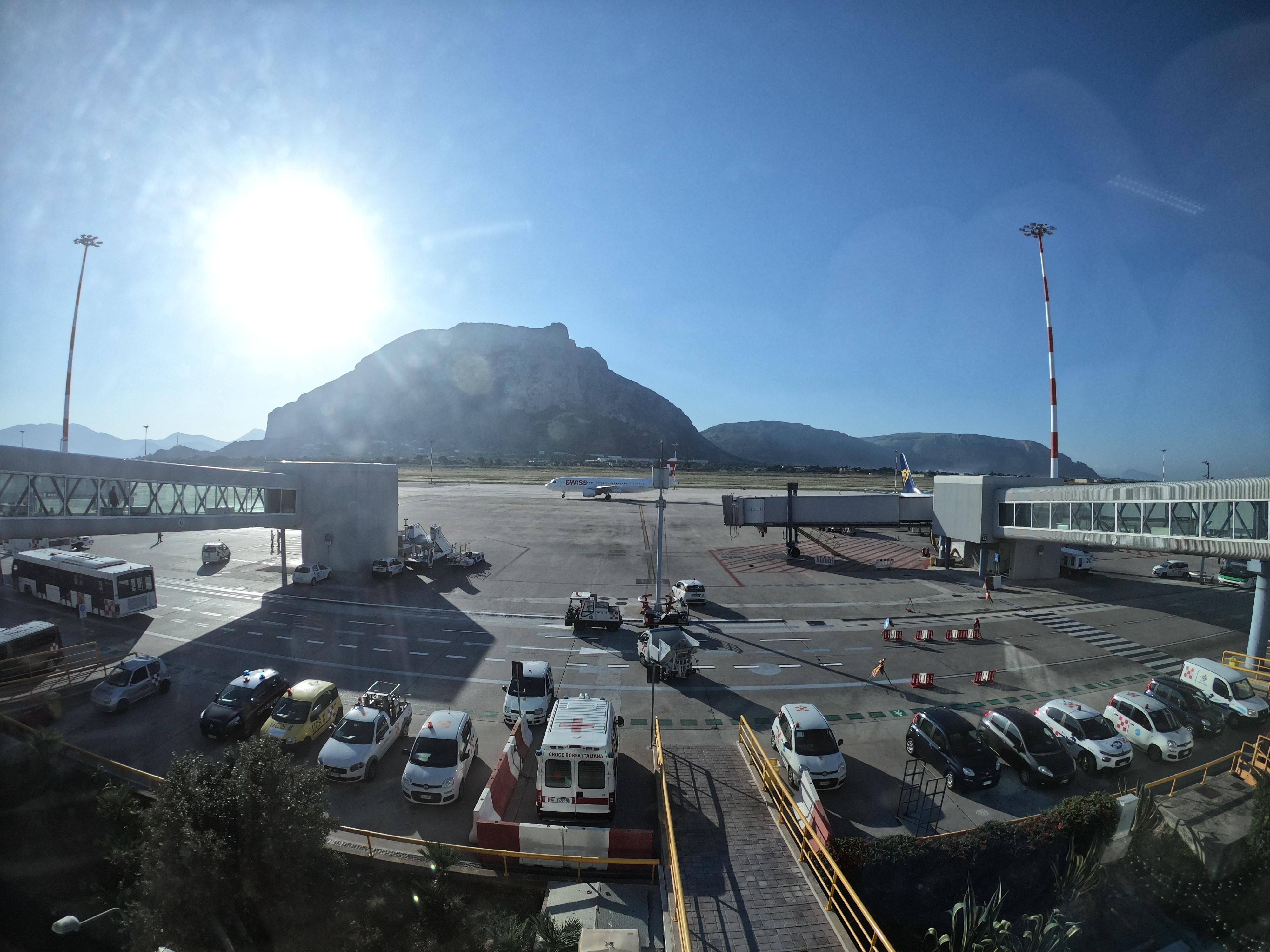 Andi hatte einen Flug am Abend, Carlos und Sarah blieben noch ein paar Tage auf Sizilien und mein Flug ging heute, Sonntag, früh. Nachdem unser Zug nach Palermo erst um halb zwölf ging Frühstückten wir noch in einem kleinen Café in der brandneuen Marina. Anschließend ließen wir uns vom Marina-Office ein Taxi zum Bahnhof rufen welches 10 Minuten später kam. Am Bahnhof kauften wir die Tickets und die anderen 3 gingen nochmal in ein Café während ich im Warteraum blieb weil ich keine Lust hatte mein Gepäck in der Gegend herumzutragen. Und die halbe Stunde im Warteraum störte mich nicht. Der Zug hatte ein paar Minuten Verspätung, aber als er dann da war fanden wir recht schnell einen Platz für uns 4 und ich schlief fast die ganze Fahrt nach Palermo.